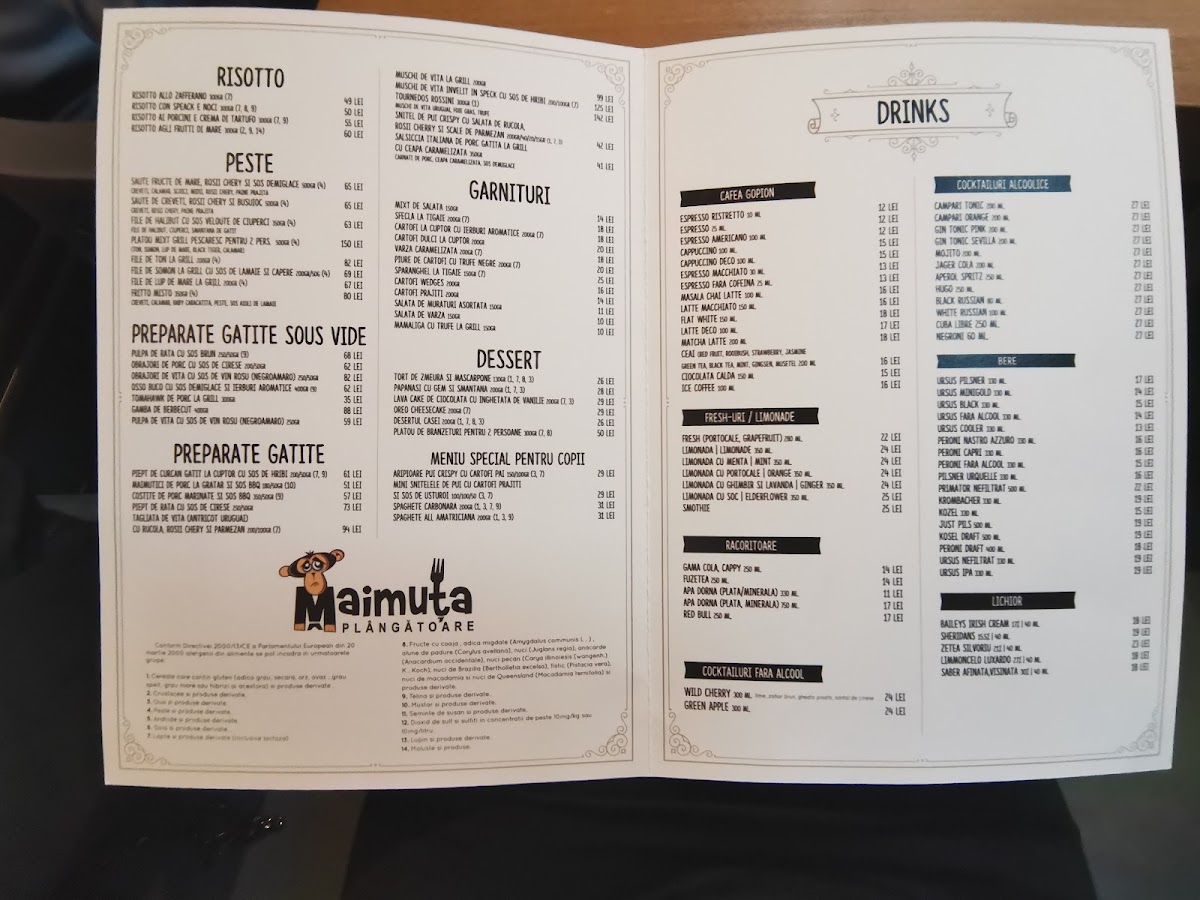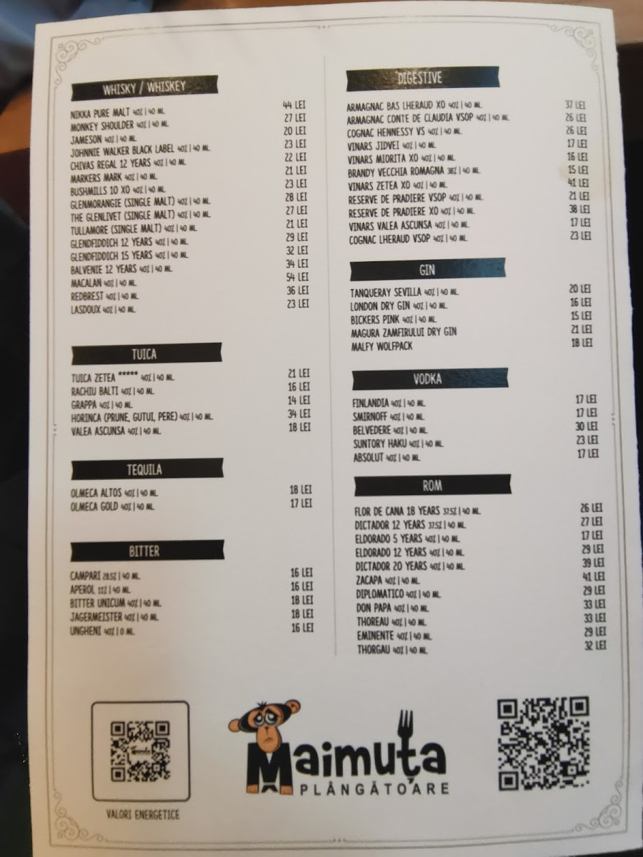 The menu at Maimuța Plângătoare offers a thoughtful blend of comforting dishes and refreshing drinks, reflecting a relaxed and approachable dining experience. Whether you're stopping by for a casual meal or settling in for an evening with friends, you'll find a selection that balances traditional Romanian flavors with familiar favorites.