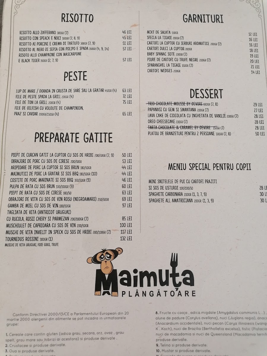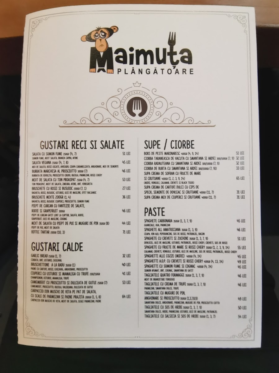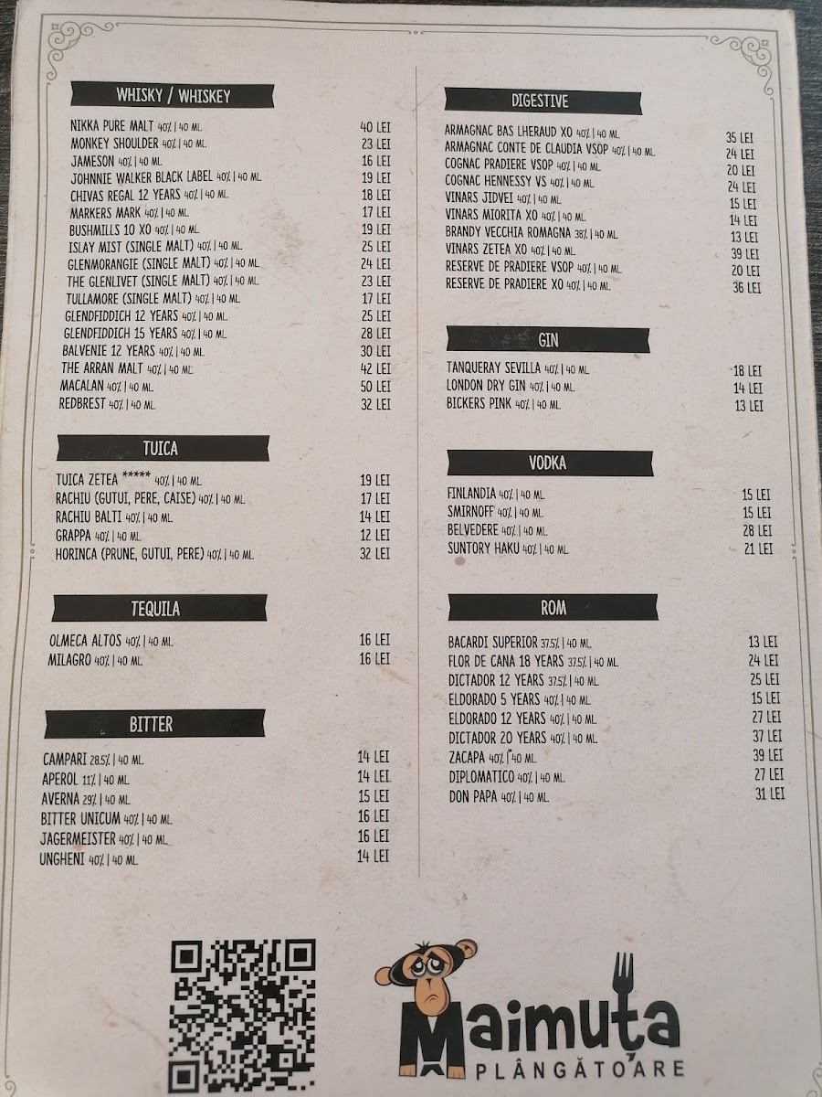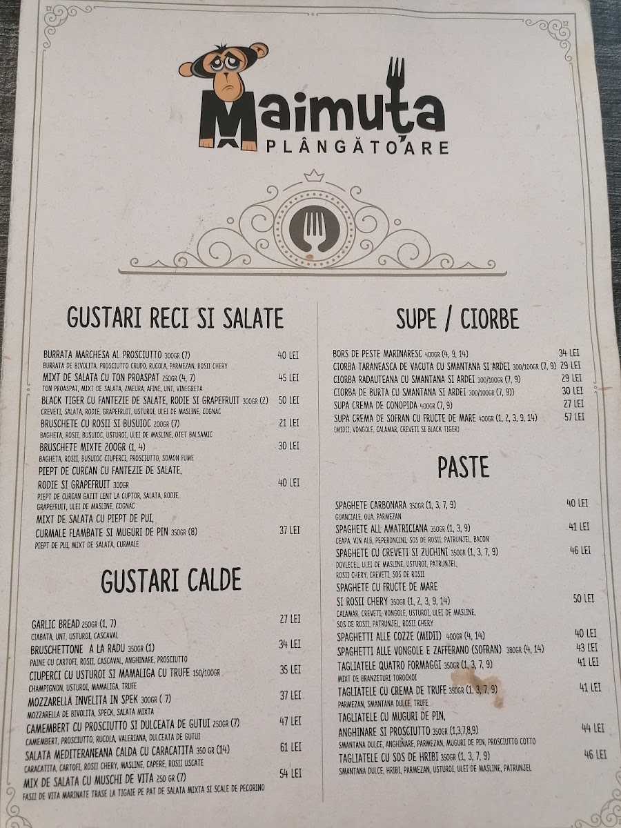 The overall atmosphere invites guests to savor their food without rush, enjoying familiar tastes in a setting where both simplicity and quality come through naturally. Whether it's a midday break or a relaxed evening, the menu complements the easygoing vibe of Maimuța Plângătoare, creating moments that feel quietly satisfying and genuine.