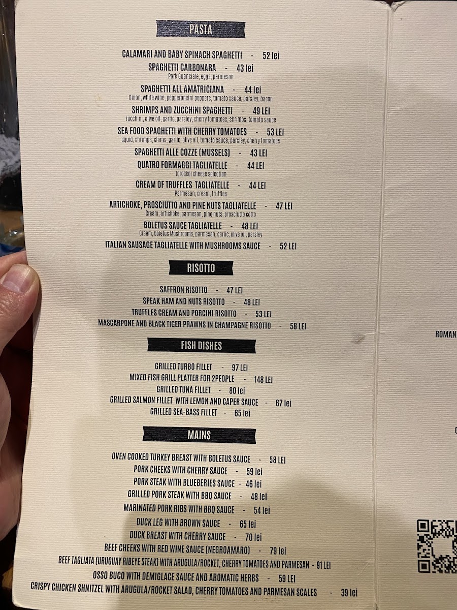 Highlights include lighter options like crisp Lemonade or a fragrant Hugo cocktail, ideal for warm afternoons or unwinding under the shade of the restaurant’s outdoor seating. Heartier choices like Paste Carbonara, Duck Breast, or the richly savory Beef Steak suit a leisurely dinner, paired well with attentive but unhurried service. For a sweet finish, desserts such as the classic Papanasi, delicate Oreo Cheesecake, or warm Lava Cake with Vanilla Ice Cream offer a comforting end to any meal.